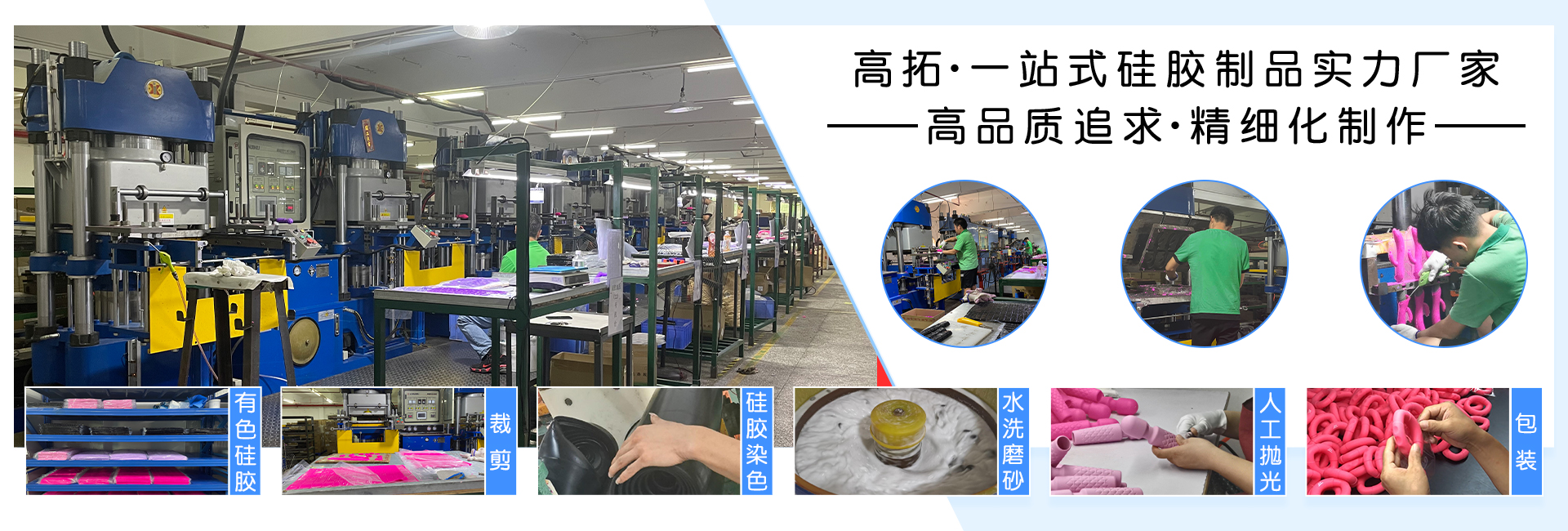 東莞市高拓硅膠制品有限公司是一家順應市場而生的大型硅膠制品OEM/ODM生產企業,公司以設計開發、模具制造為基礎,集研發、生產、銷售為一體,致力于成為國內頂尖的硅膠制品注塑成型解決方案供應商。高拓硅膠以“效率第一、品質第一、信譽第一”為宗旨,堅持“低成本、高技術、高品質”的方針,引進先進的模具制造、注塑成型等生產設備,并不斷提高自身的研發生產技術水平,確保能夠準時、高效地為客戶提供穩定優質的產品及服務。 展望未來,公司將秉承“敬業、誠信、融合、創新”的企業精神,以“研制更好的產品,提供更好的服務,創建更好的形象”三個更好作為競爭策略,不斷進行變革和管理創新,增強企業綜合競爭力;愿與各界朋友進行更加廣泛的合作,與時俱進,共創未來!經營范圍:洗手液硅膠掛套、硅膠墊、硅膠包、硅膠杯、硅膠保護套、硅膠寵物用品、硅膠汽車配件、硅膠生活用品、硅膠嬰兒用品、硅膠美妝用品、硅膠按鍵、硅膠雜件、硅膠玩具、硅膠廚具、硅膠禮品等。